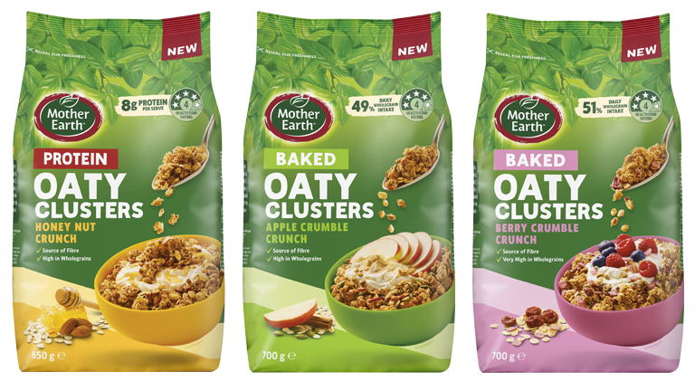 A graphic of a collection of assorted ingredients: honeycomb, oats, wheat, apples, raspberries, almonds, peanuts, and dark chocolate.